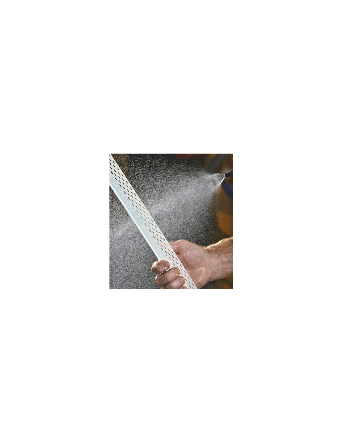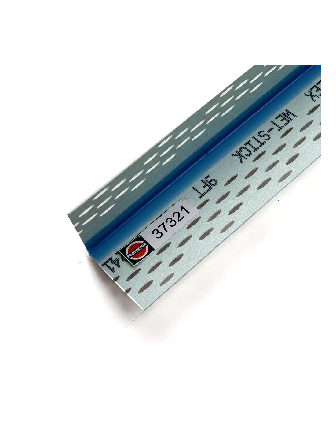 Naudodami Wet-Stick 37321, tiesiog apipurkškite mėlynąją (vidinę) kampo pusę švariu vandeniu naudodami paprastą pulverizatorių. Palaukite apie 45 sek., kol klijai taps „lipnūs“, prispauskite kampą prie briaunos ir perbraukite specialiu kampiniu voleliu arba mentele, kad pašalintumėte oro pūsles. Glaistyti galima jau po 5–10 minučių! Tai pats patikimiausias būdas išvengti kampų „atšokimo“ ateityje.