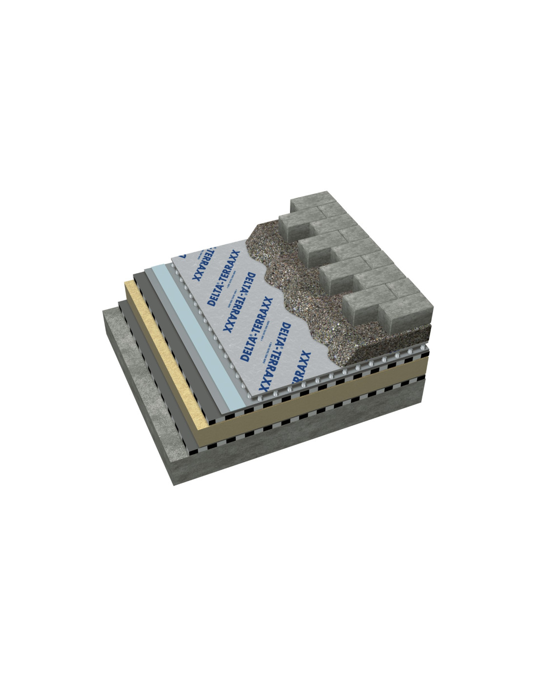 „DELTA®-TERRAXX“ yra pripažinta kaip viena efektyviausių drenažinių membranų rinkoje, kai reikalinga patikima apsauga nuo drėgmės kaupimosi prie pamatų sienų ar po horizontaliomis dangomis. Sidabrinė membranos spalva užtikrina mažesnį įkaitimą montavimo metu, o speciali gumbelių struktūra garantuoja stabilų vandens nuvedimą dešimtmečiams.