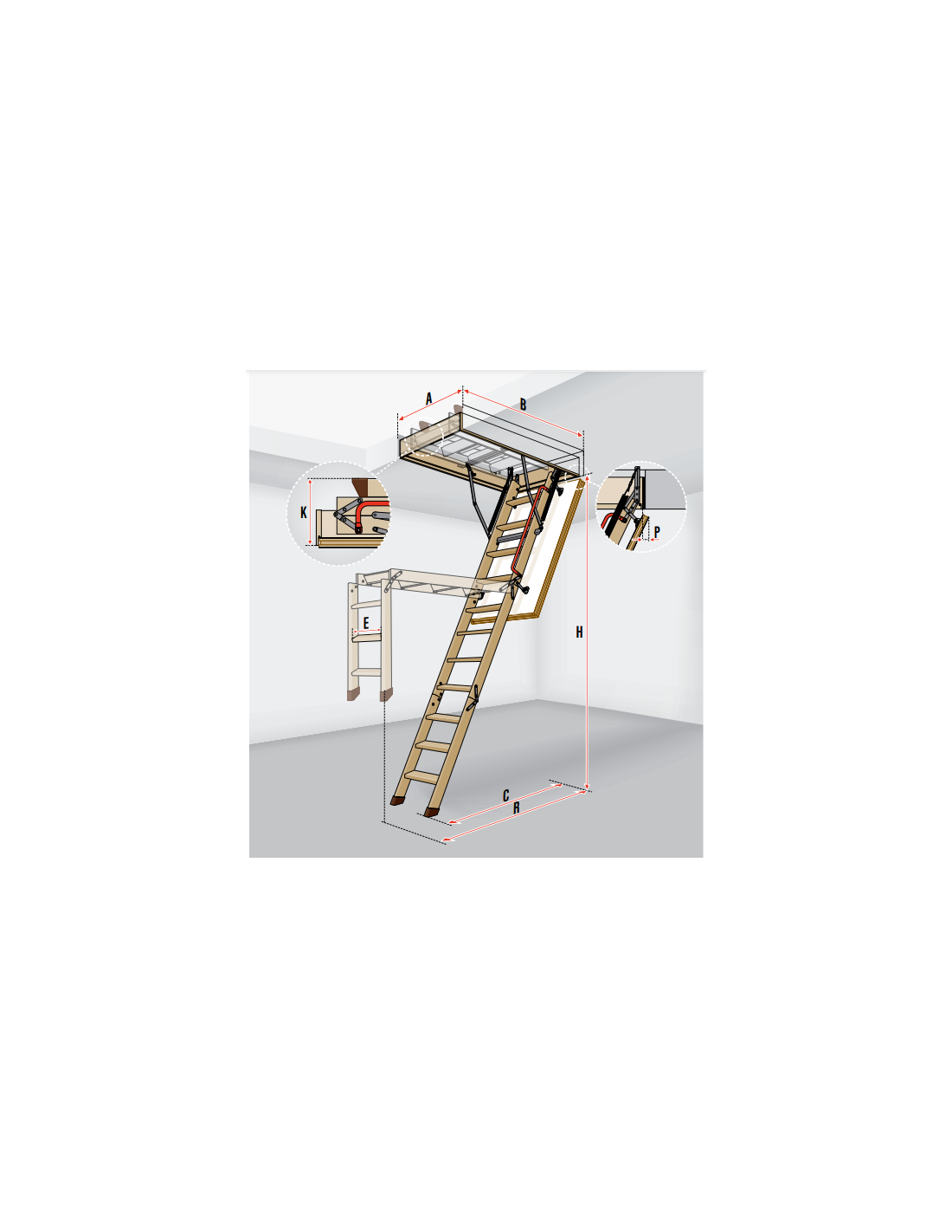 Fakro LWK Plus yra 3 arba 4 dalių sulankstomi laiptai, pagaminti iš aukščiausios rūšies pušies medienos. Šis modelis yra idealus sprendimas tiems, kurie ieško balanso tarp kainos ir aukšto naudojimo komforto. Inovatyvi liuko konstrukcija leidžia jį sumontuoti greitai ir be specialių įrankių, o vyriai automatiškai reguliuoja atstumą tarp kopėčių ir liuko. Pakopos yra iškištos virš kopėčių sijų lygio, todėl lipimas tampa dar saugesnis ir patogesnis.