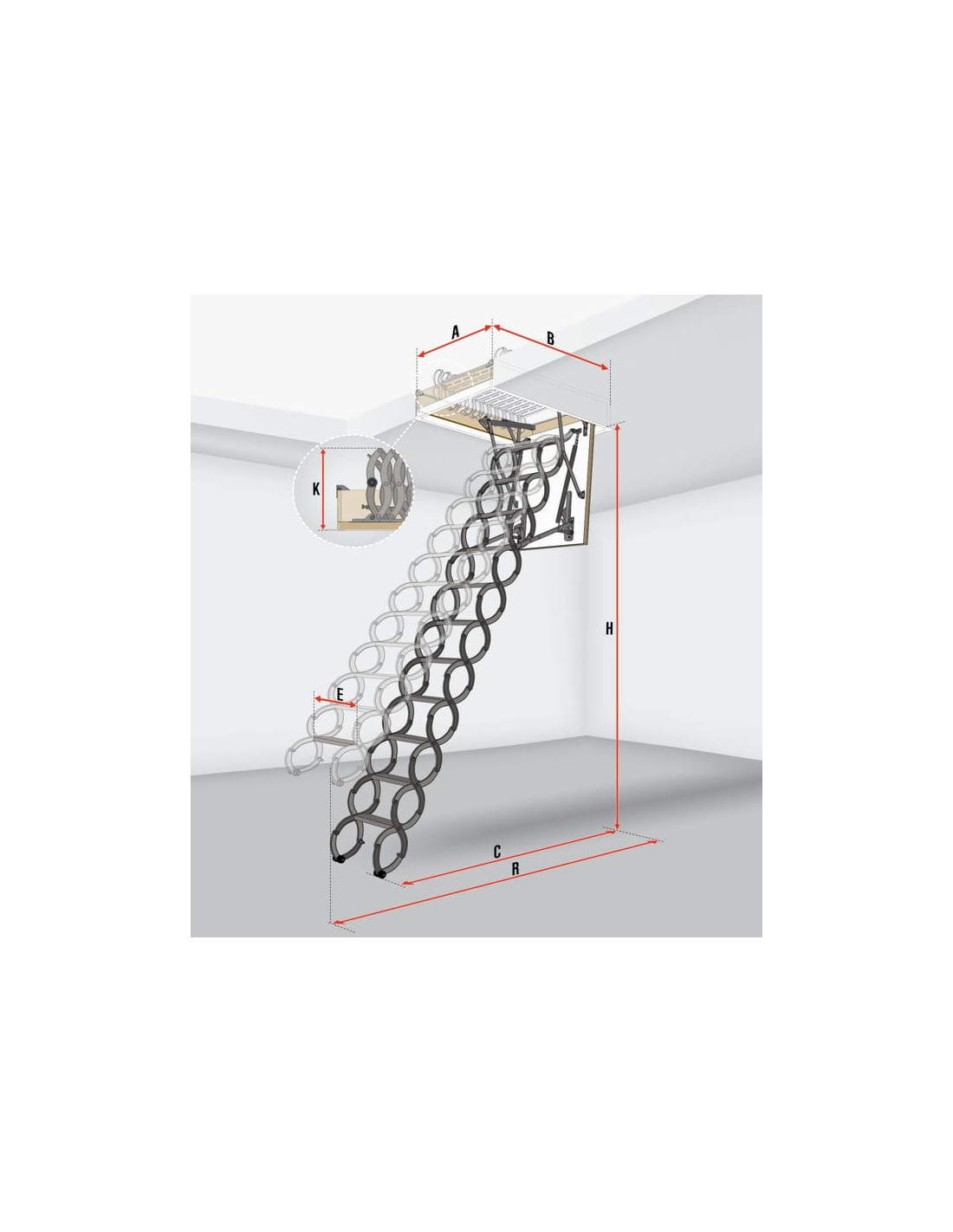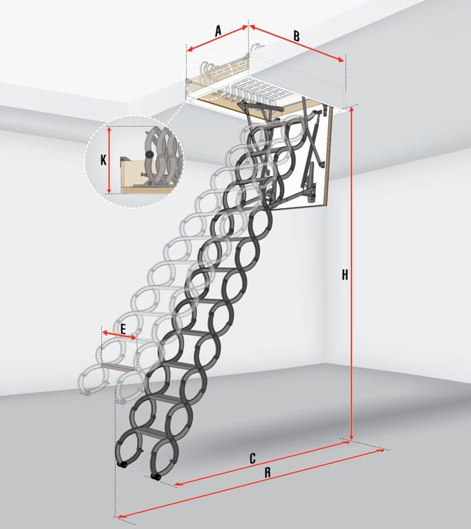 Fakro LST modelis išsprendžia problemą, kai palėpės anga yra per maža standartiniams laiptams. Dėl „armonikos“ tipo susilankstymo, šiems laiptams nereikia didelio užsimojimo spindulio atidarymo metu, o suskleisti jie visiškai telpa į dėžę.