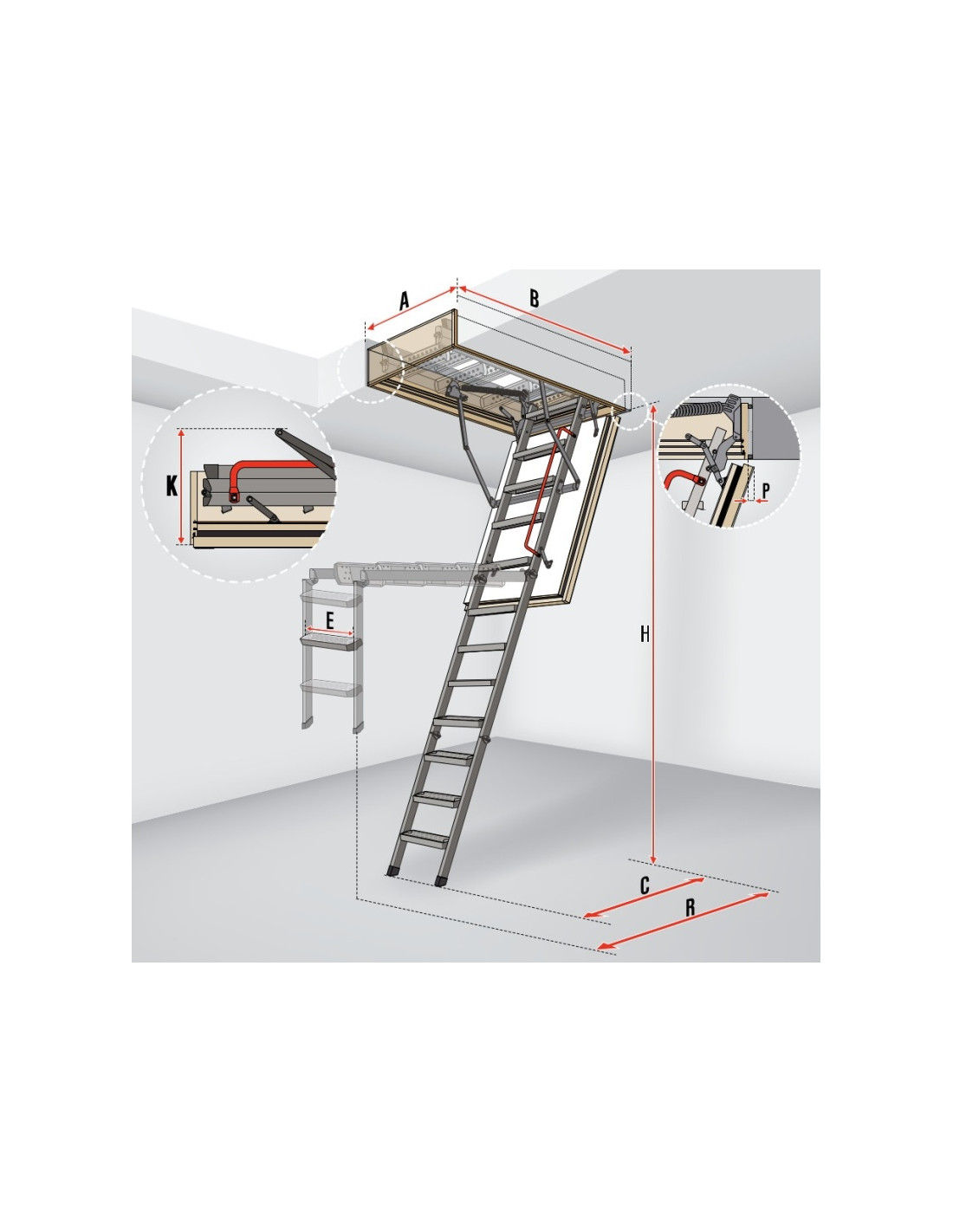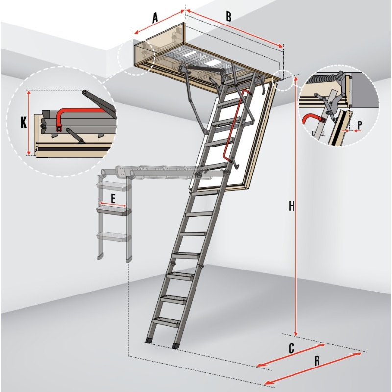 Šie priešgaisriniai laiptai pasižymi EI60 atsparumu ugniai. Platesni modeliai (86x130) suteikia papildomą komfortą nešant daiktus į palėpę.