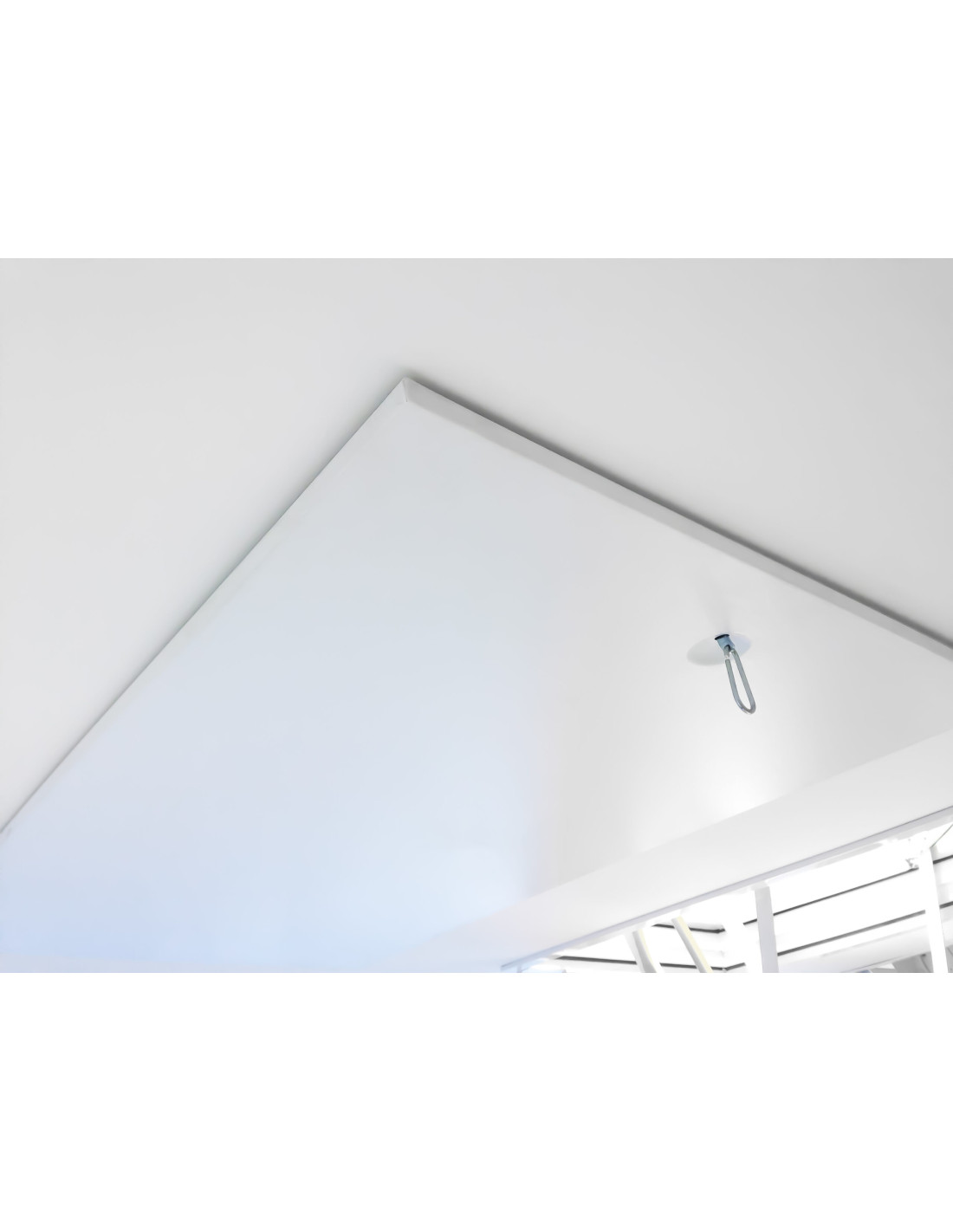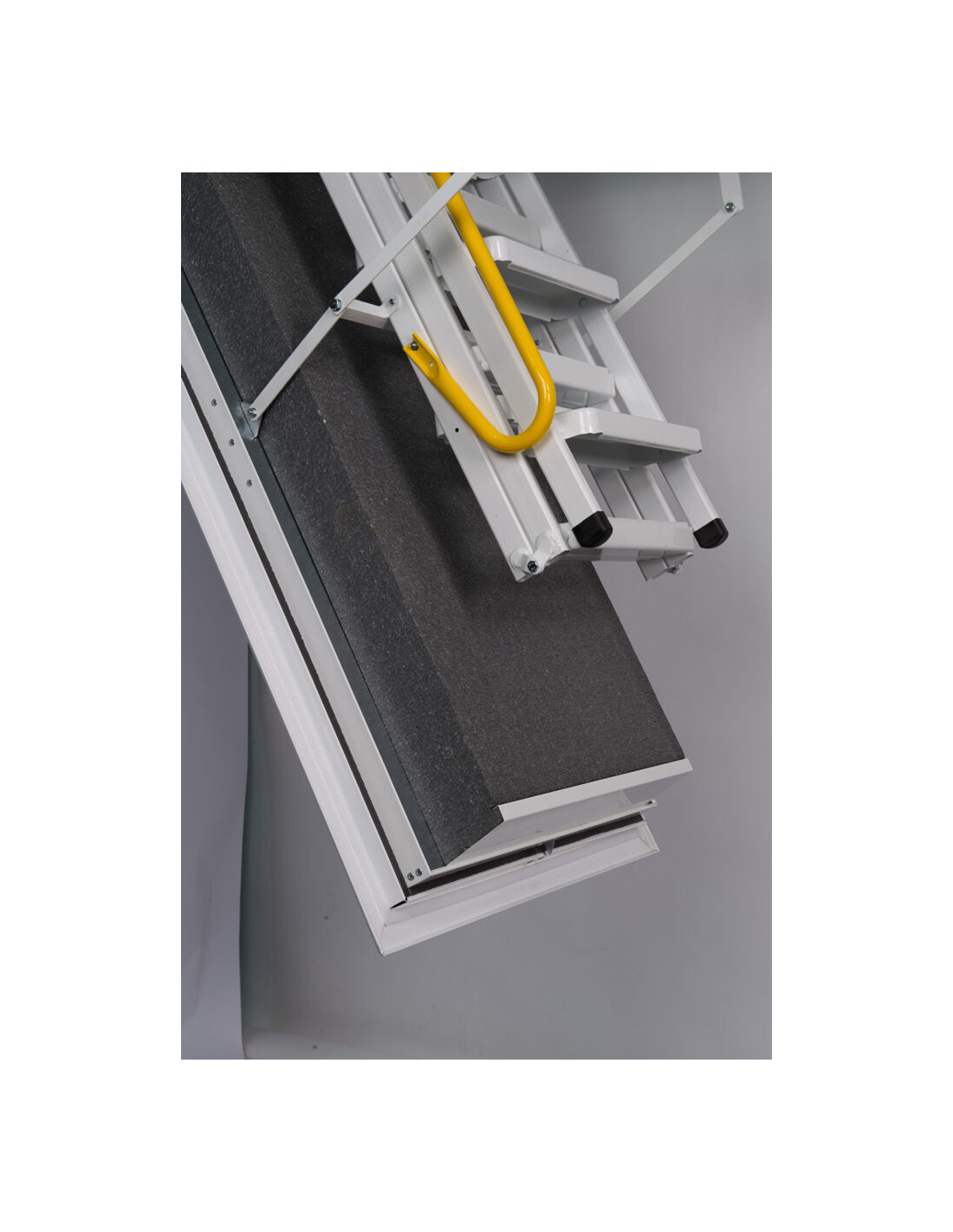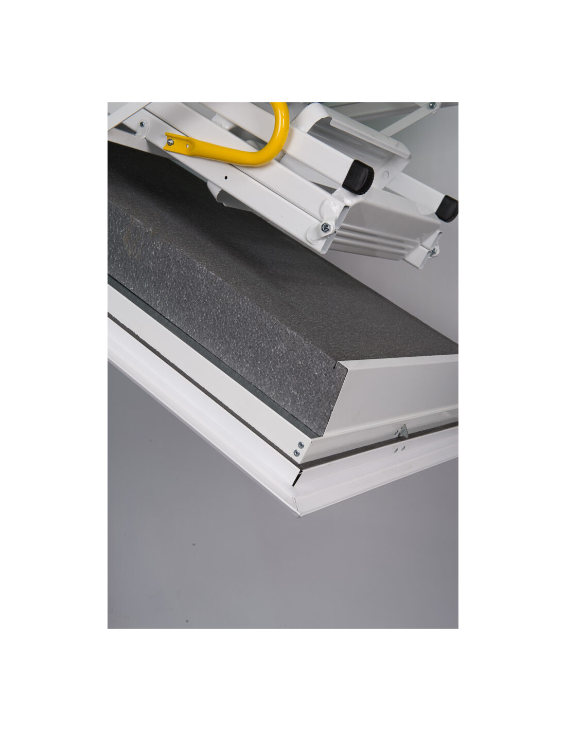 • Estetiškas dizainas: Apatinis liuko dangtis yra visiškai lygus, be matomų vyrių ar spynų, todėl uždaryti laiptai lubose atrodo kaip vientisa balta plokštuma.
