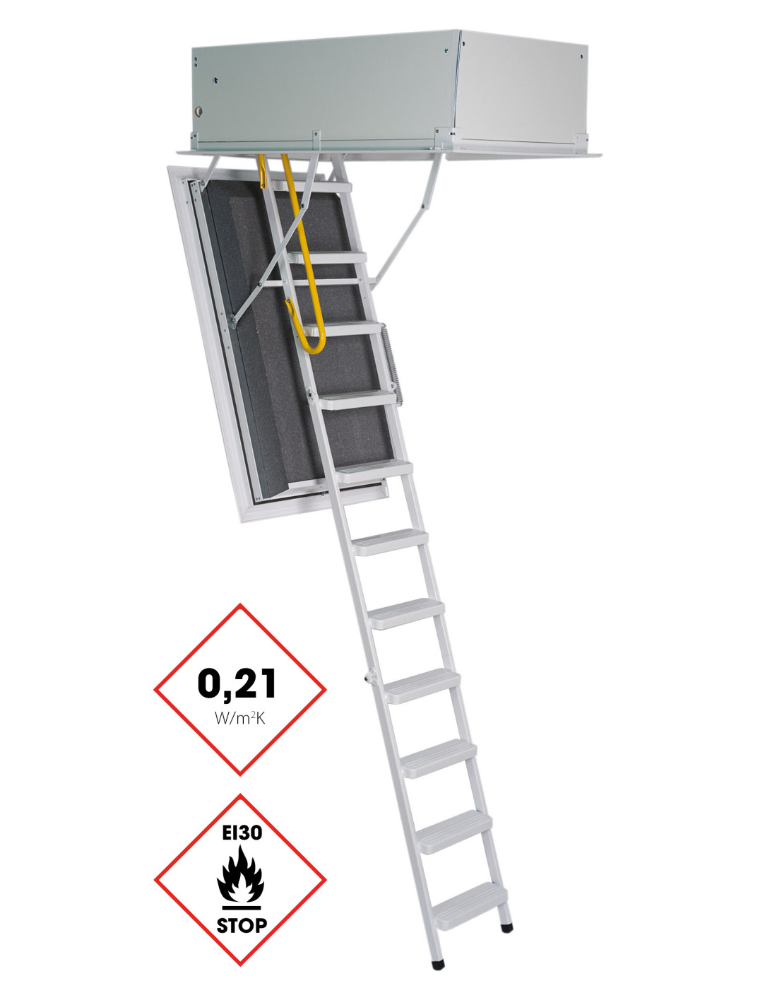 • Ekstremalus šiltumas: Liuko izoliacija yra tokia efektyvi, kad pasiekiamas 0,21 W/m²K rodiklis. Naudojant kartu su papildomu "ISO" viršutiniu dangčiu, laiptai tampa vienais šilčiausių pasaulyje (0,14 W/m²K).