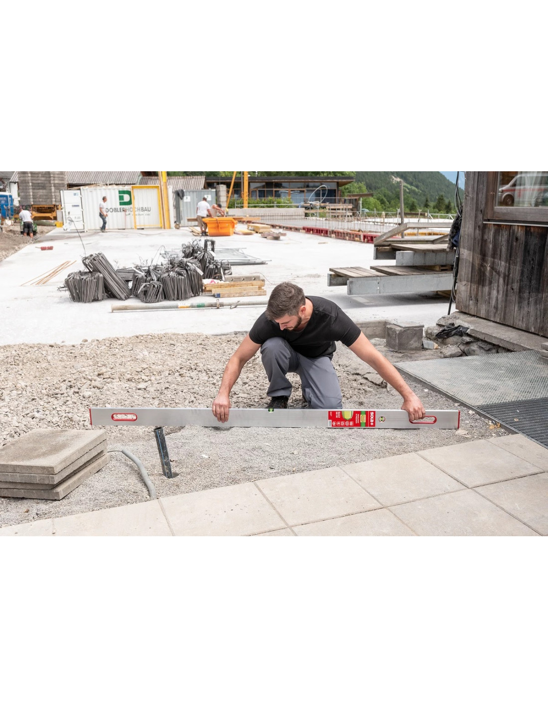 - Maksimali kontrolė su 2 rankenomis: Rankenos užtikrina tvirtą suėmimą ir leidžia tolygiai paskirstyti spaudimą. Tai ypač svarbu dirbant su ilgais lotais (nuo 2 metrų), kad būtų išvengta „bangavimo“.
